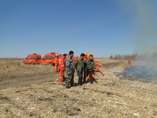 林业局局长衡军同志来我场调研期间,看到林区内很多农户的秸秆还都积压在地里未进行处理,不仅存在火险隐患,并且影响农户适时春播,衡局长看在眼里,急在心里,立即安排部署,出动驻地扑火大队,从既要保证防火安全又要利于农业生产的角度出发,选择有利天气,现场指挥,帮助农民进行点烧、看护、清理,消除火灾隐患及农户的后顾之忧。